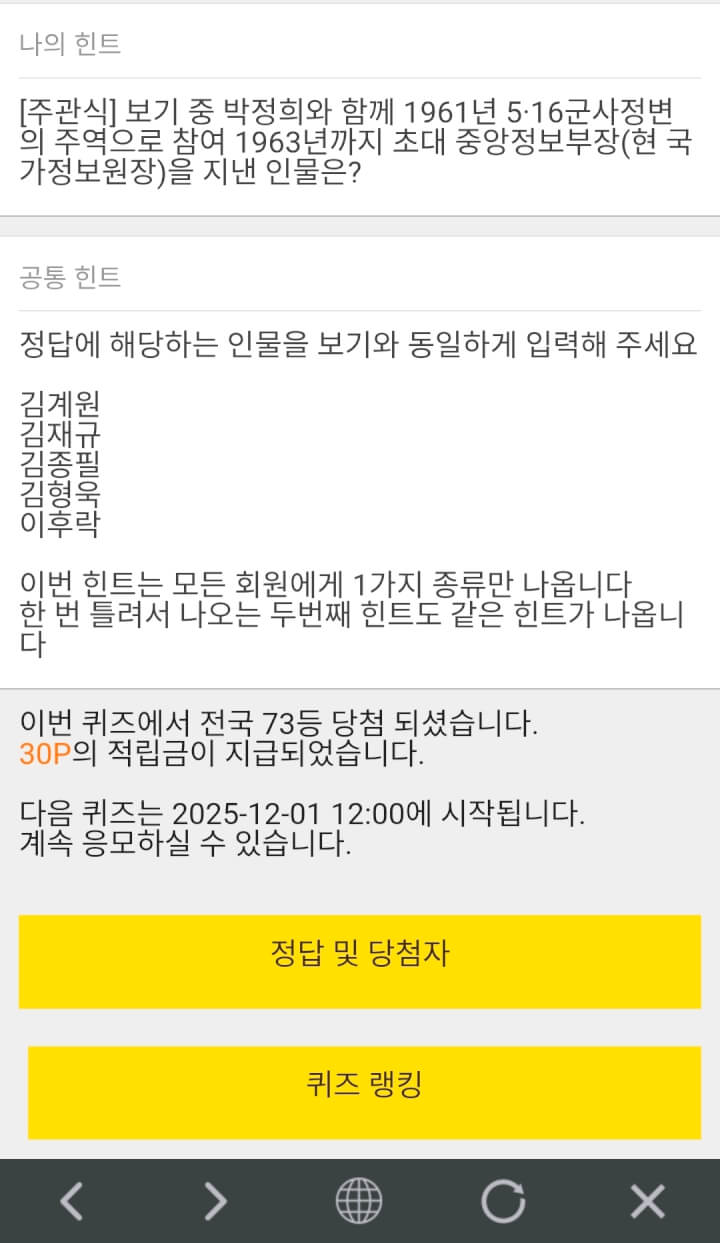 7시퀴즈 30원 받았습니다