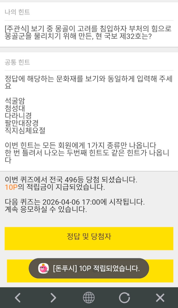 12시퀴즈 10원 받았습니다