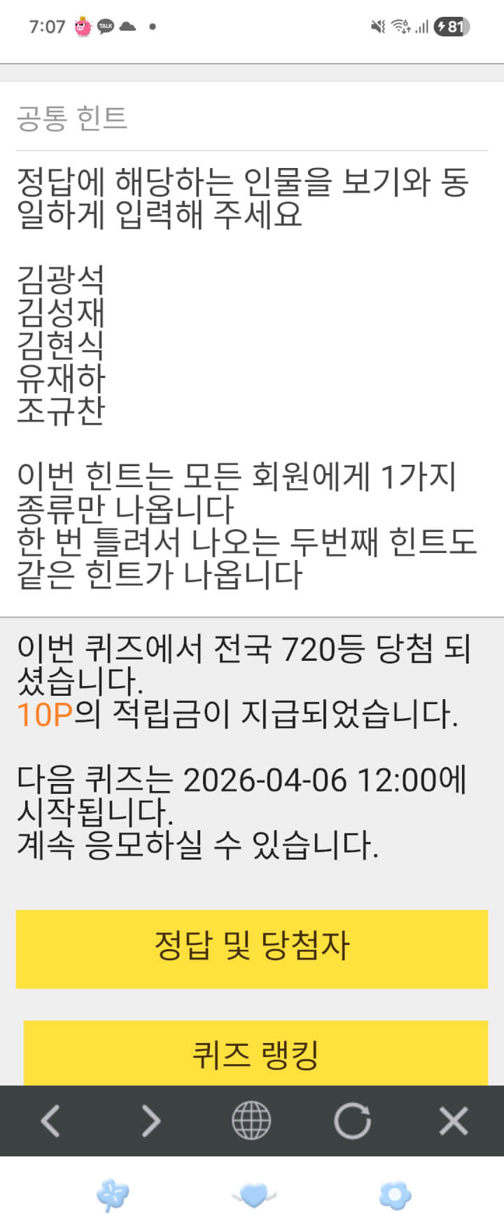 아침퀴즈 10원과 딱떨어진 숫자놀이 담아 월요일 푸시 동참합니다 ☘️☘️