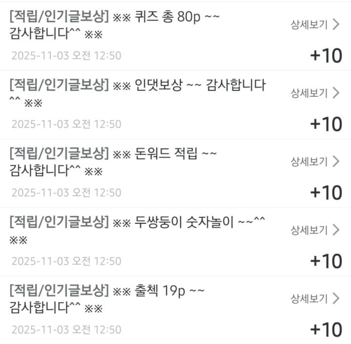 인기글 보상 5개 받았습니다 😊 댓글과 꾹으로 함께해 주셔서 감사합니다 ❤️🩷🧡🍀☘️