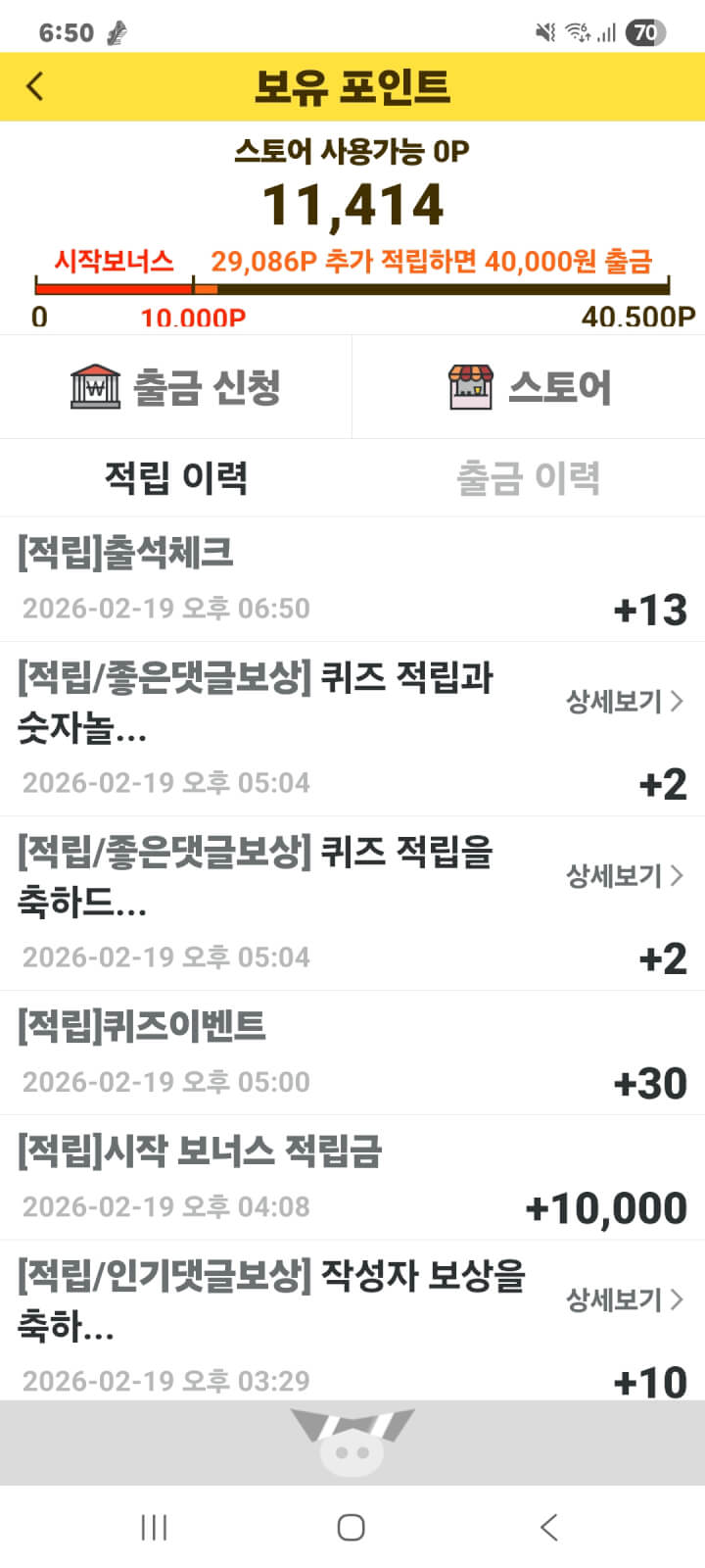 출석체크 두자릿수 획득 적립을 하였습니다. 감사합니다.