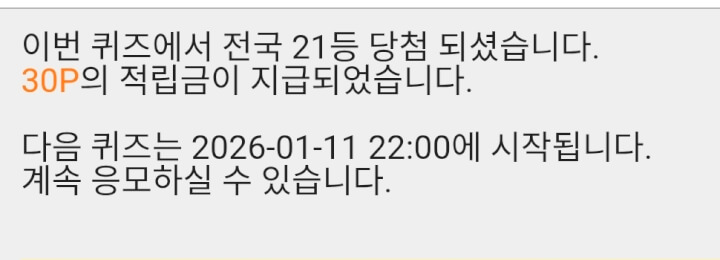 5시퀴즈 30원 받았어요 항상 무댓으로 눌러드리고 있어요