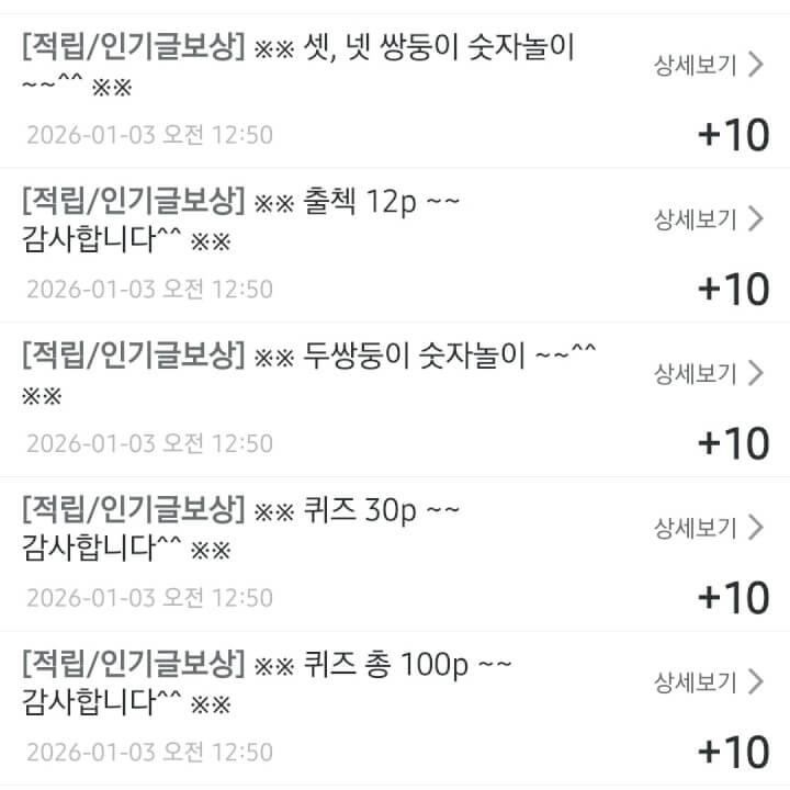 인기글 보상 5개 받았습니다 😊 댓글과 꾹으로 함께해 주셔서 감사합니다 ❤️🩷🧡🍀☘️