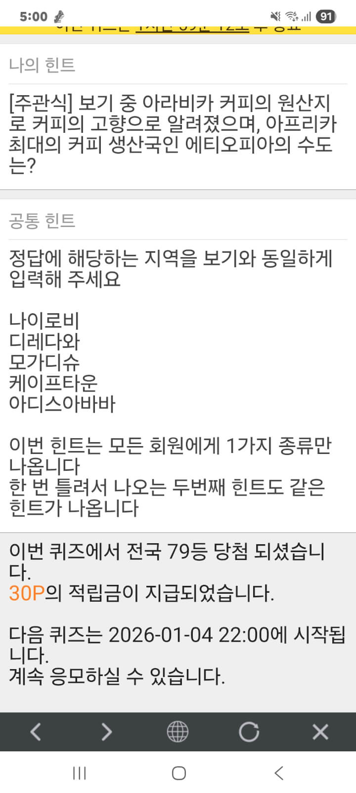 퀴즈 이벤트 30원 획득 적립을 하였습니다. 감사합니다.