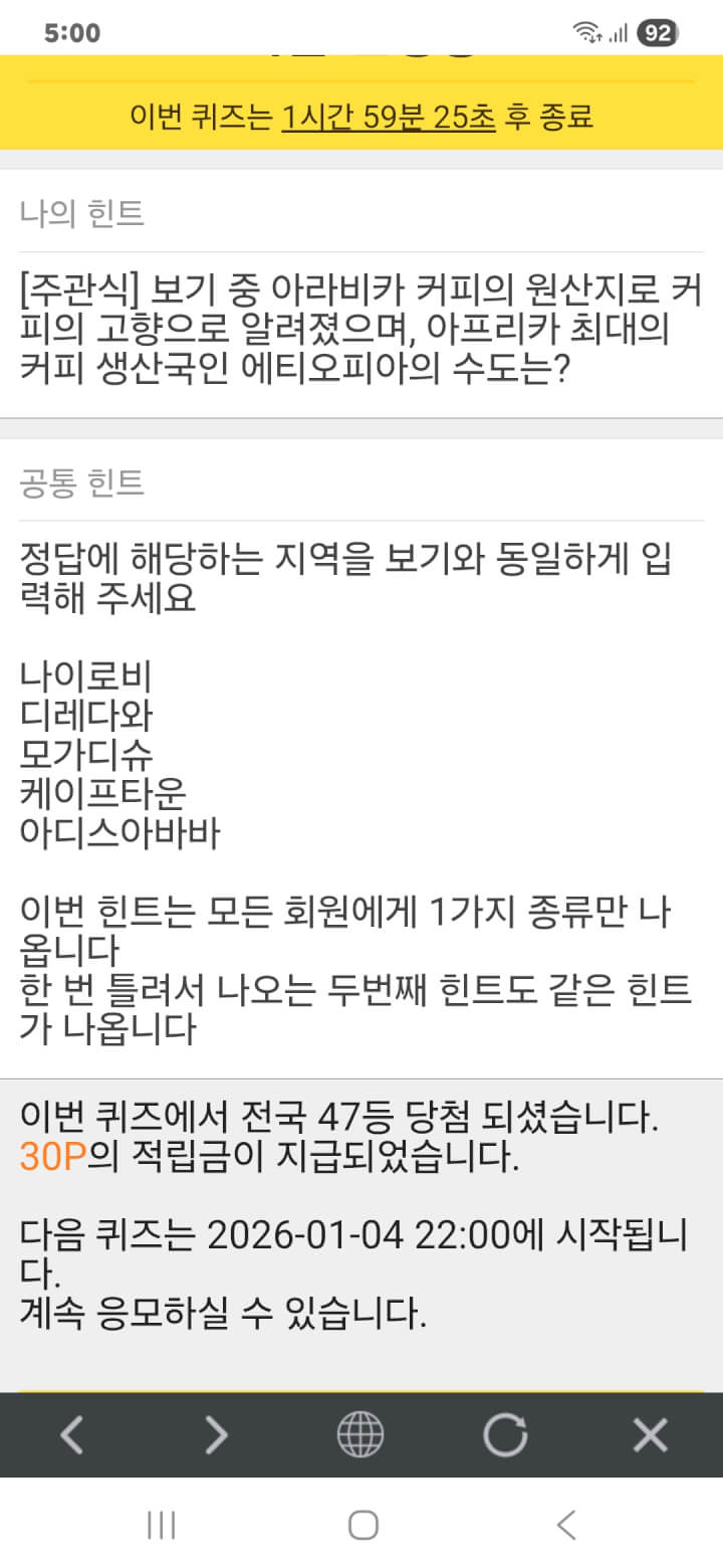 퀴즈 이벤트 30원 획득 적립을 하였습니다. 감사합니다.