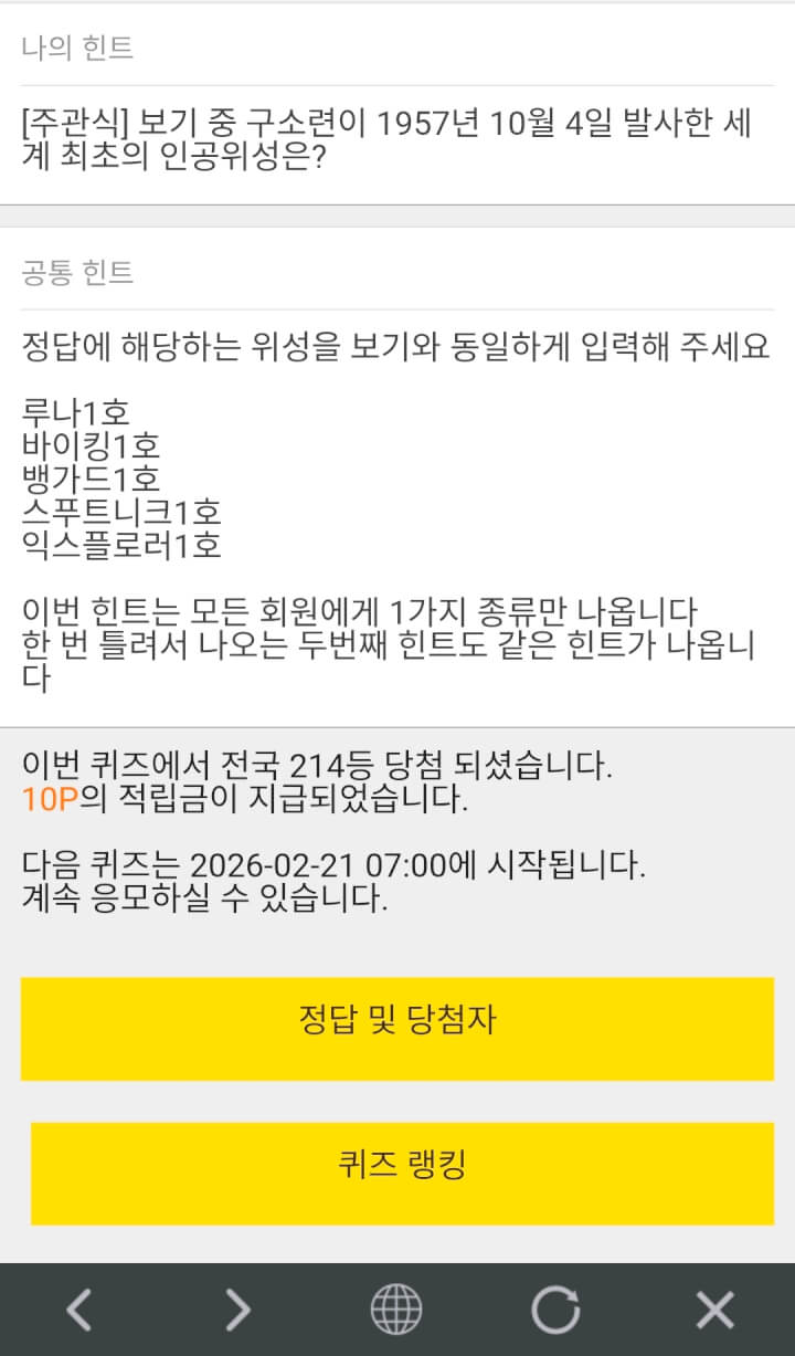 10시퀴즈 10원 받았습니다