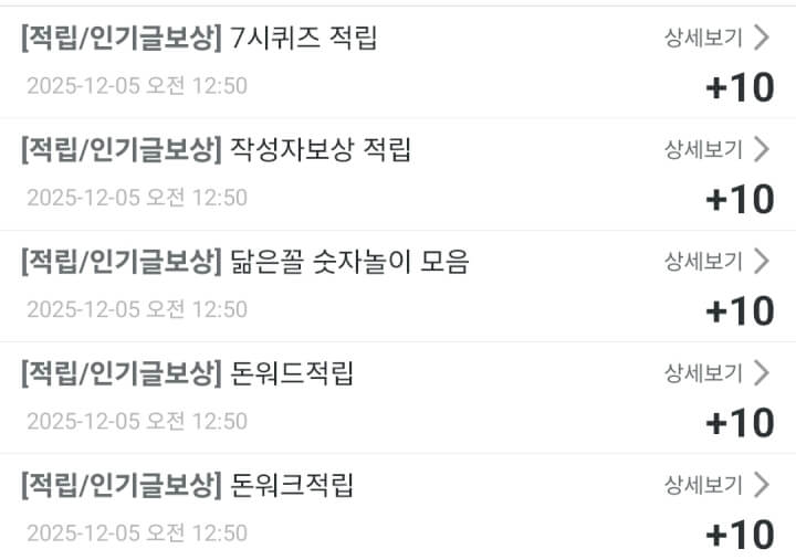 - 인기글보상 적립