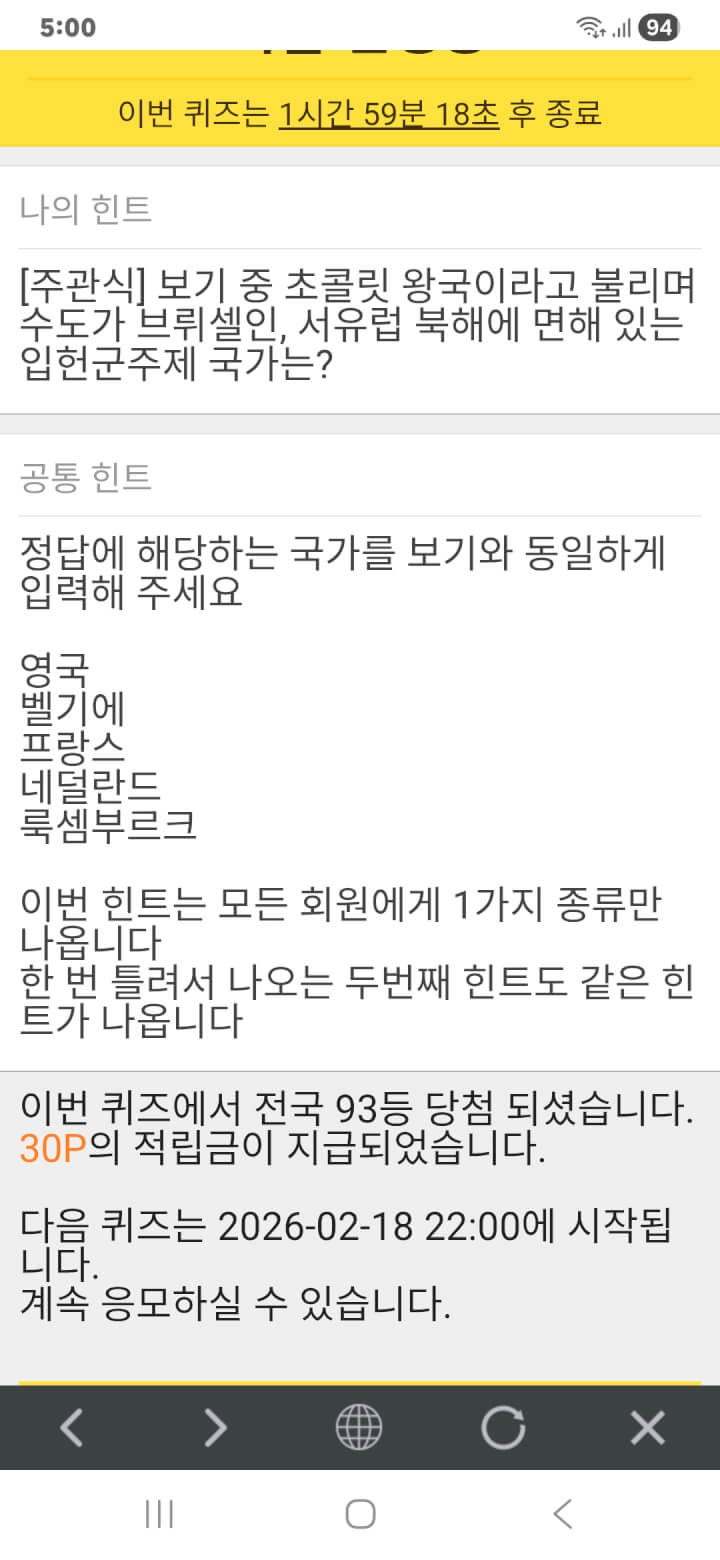 퀴즈 이벤트 30원 획득 적립을 하였습니다. 감사합니다.