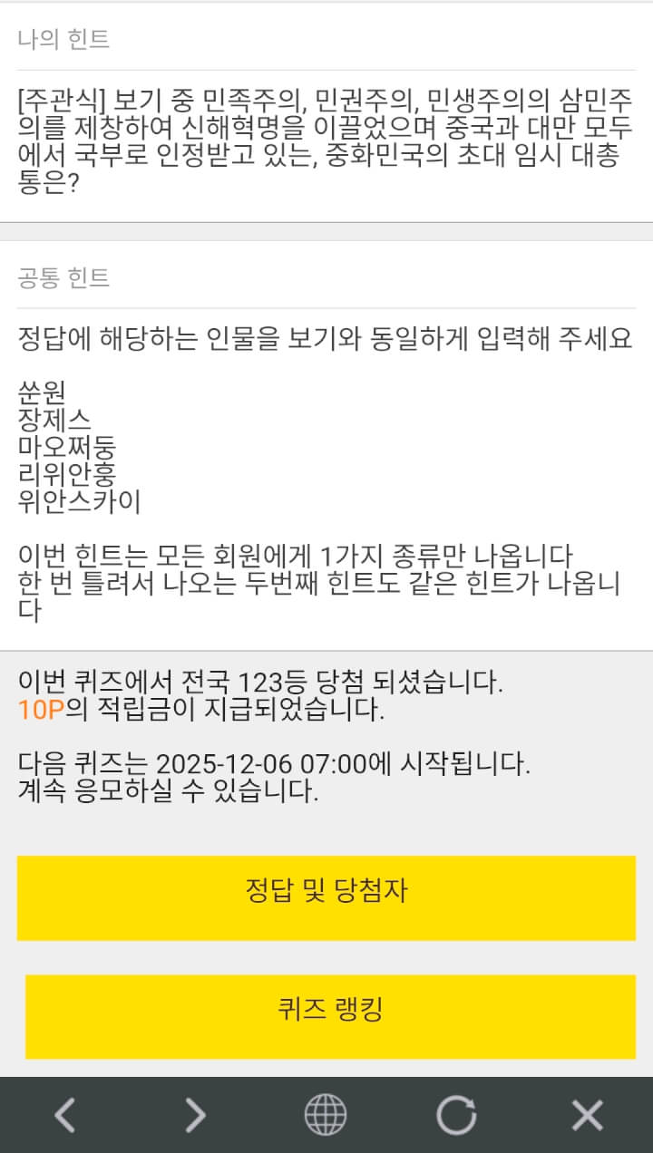 10시퀴즈 10원 받았습니다