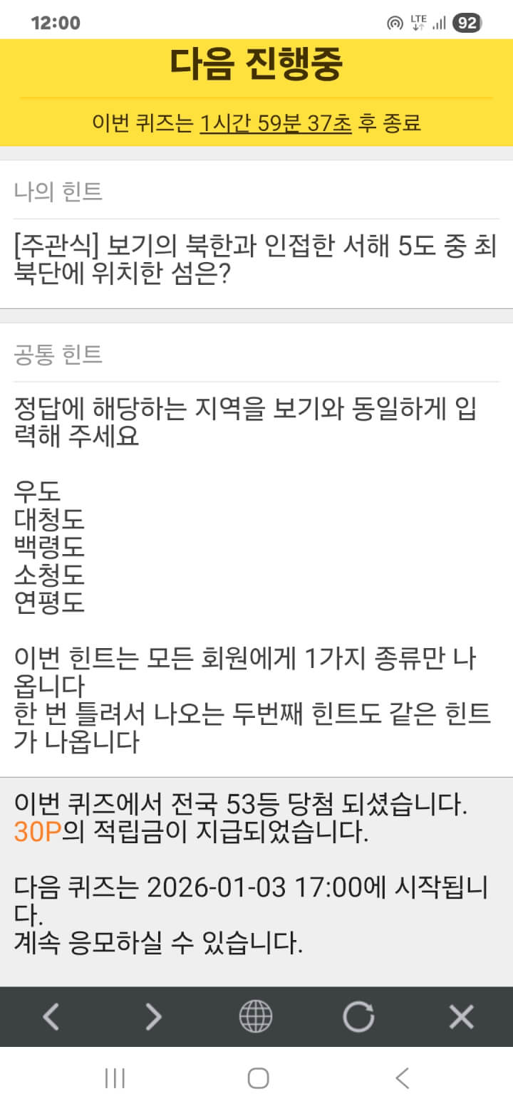 퀴즈 이벤트 30원 획득 적립을 하였습니다. 감사합니다.