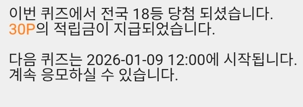 7시퀴즈 30원 받았어요