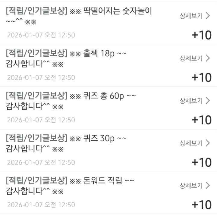 인기글 보상 5개 받았습니다 😊 댓글과 꾹으로 함께해 주셔서 감사합니다 ❤️🩷🧡🍀