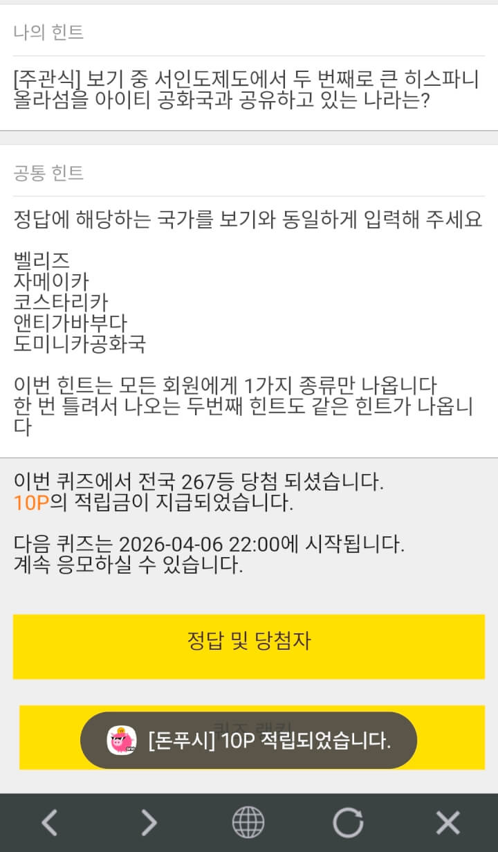 5시퀴즈 10원 받았습니다
