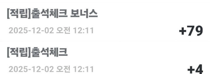 출첵 4p. 출첵보너스 79p~받았습니다 9990 9999 함께올립니다