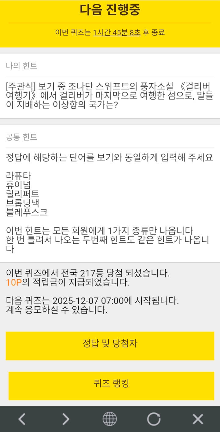 10시퀴즈 10원 받았습니다