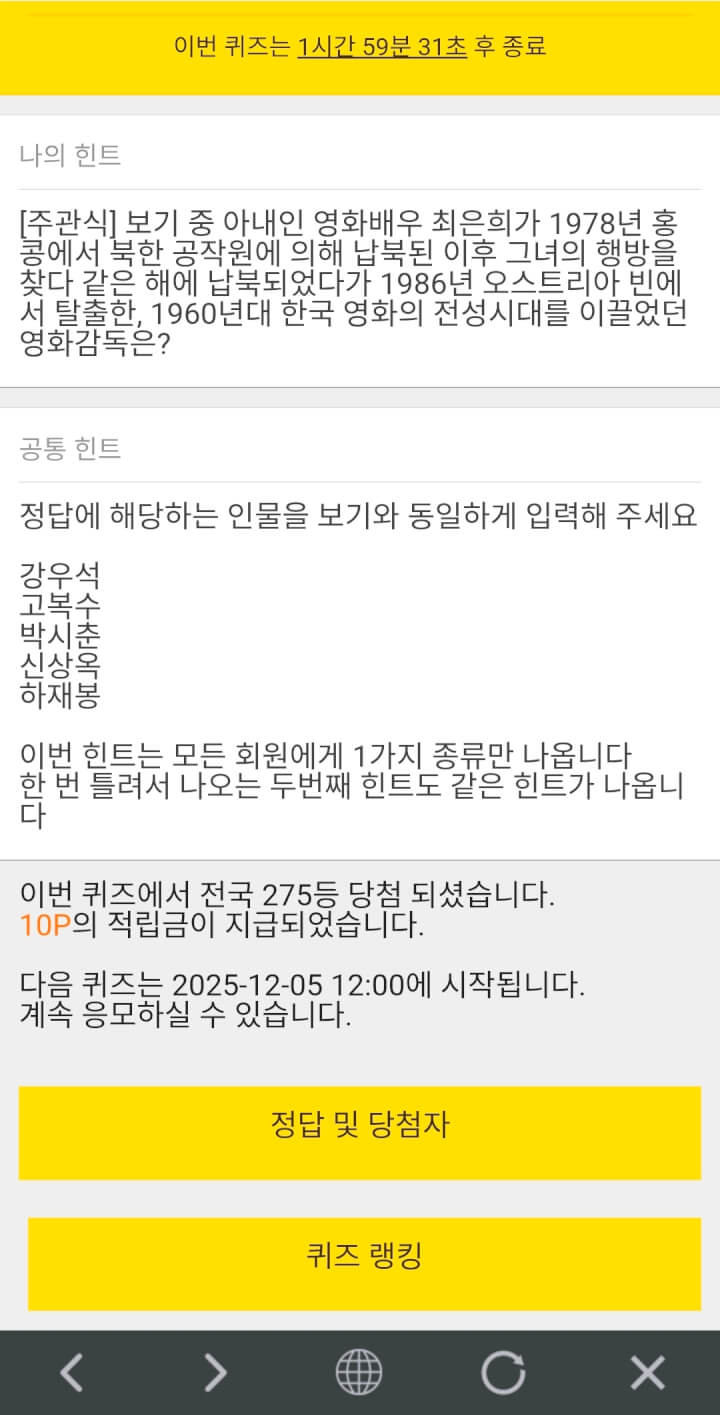 7시퀴즈 10원 받았습니다