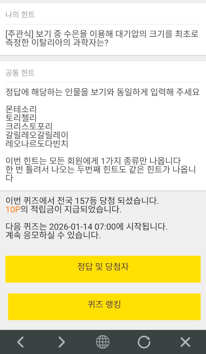 10시퀴즈 10원 받았습니다