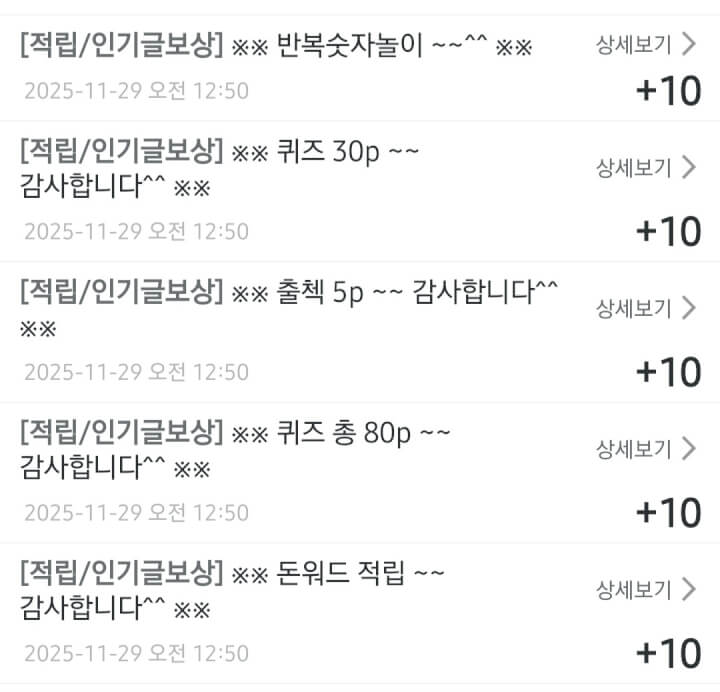 인기글 보상 5개 받았습니다 😊 댓글과 꾹으로 함께해 주셔서 감사합니다 ❤️🩷🧡🍀