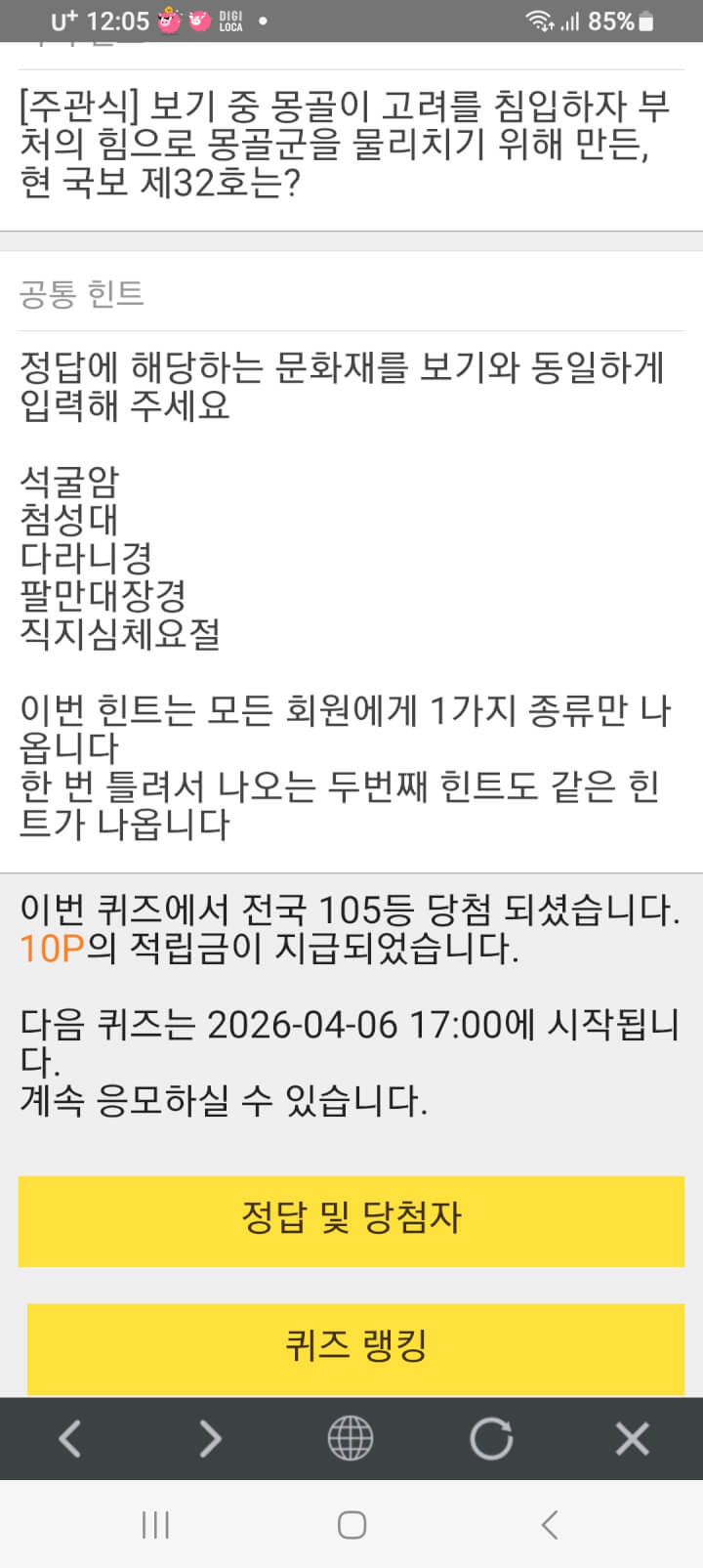 퀴즈10원 받았어요