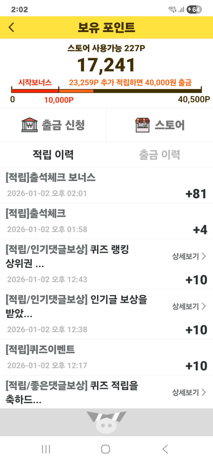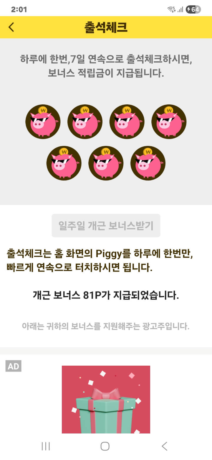 출석체크 개근상 보너스 획득을 하였습니다. 감사합니다.