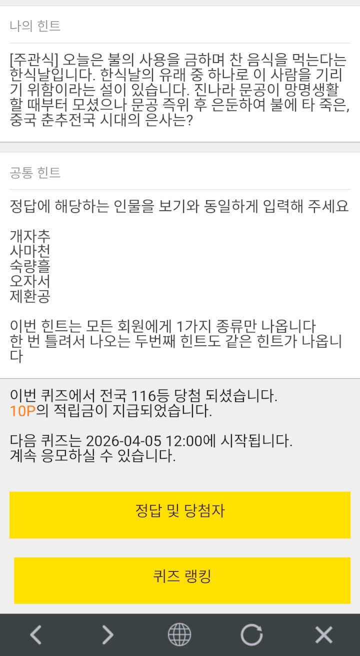 7시퀴즈 10원 받았습니다