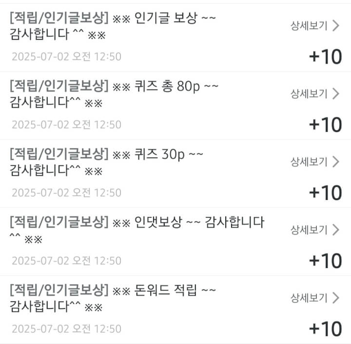 인기글 보상 5개 받았습니다 😊 댓글과 꾹으로 함께해 주셔서 감사합니다 ❤️🩷🧡🍀☘️