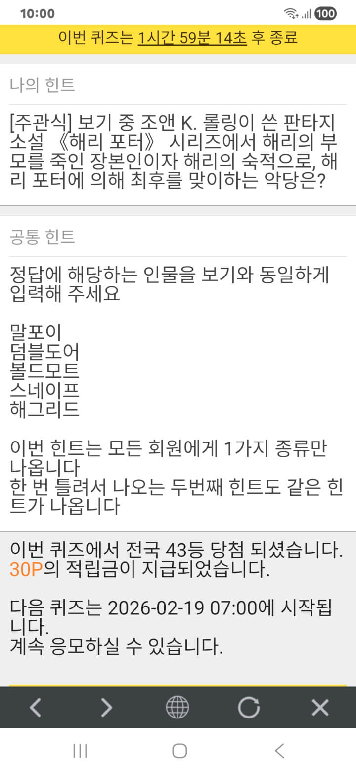 밤 퀴즈 이벤트 30원 획득 적립을 하였습니다. 감사합니다.