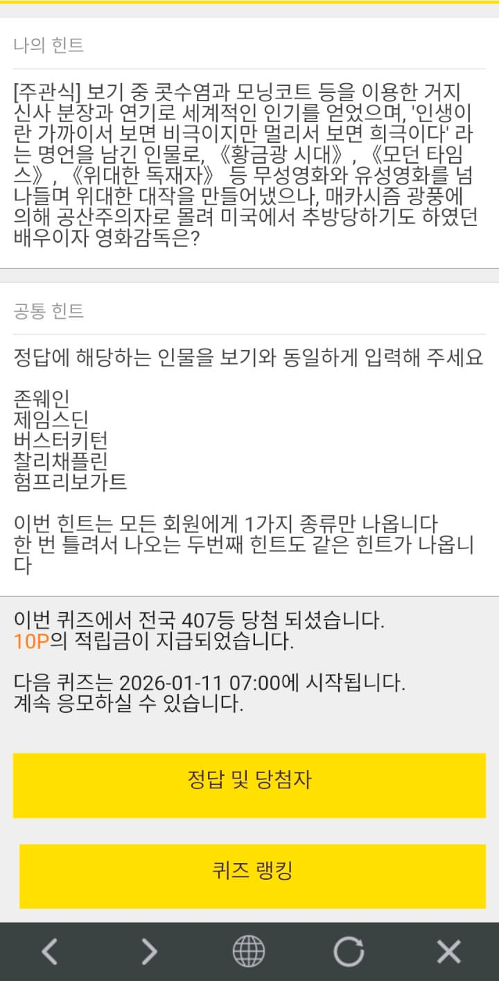 10시퀴즈 10원 받았습니다