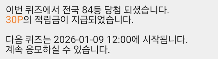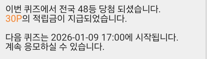 7시, 12시 퀴즈에서 30p 받았습니다 😊 댓글로 함께해 주셔서 감사합니다 ❤️🩷🧡🍀