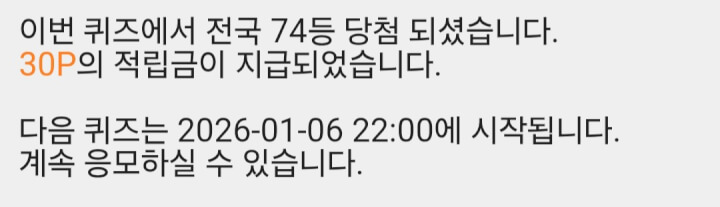 7시, 5시 퀴즈에서 30p 받았습니다 😊 댓글로 함께해 주셔서 감사합니다 ❤️🩷🧡🍀