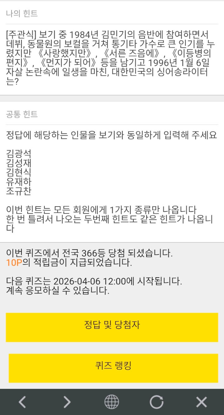 7시퀴즈 10원 받았습니다