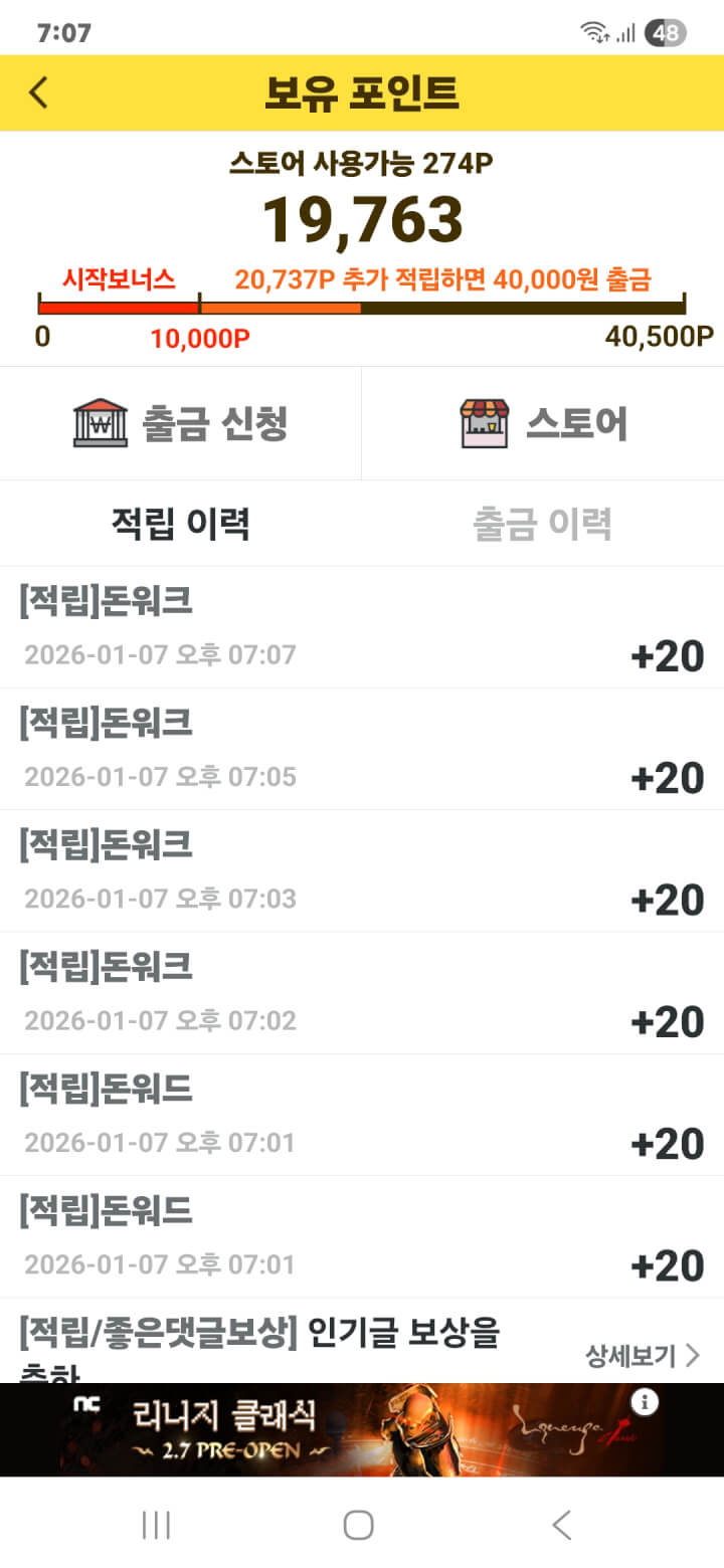 돈워드 돈워크 적립을 하였습니다. 감사합니다.