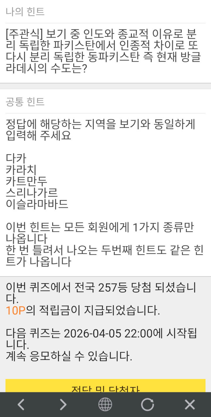 5시 퀴즈10점 받았어요. 7시 퀴즈 화이팅 하세요 ~~
