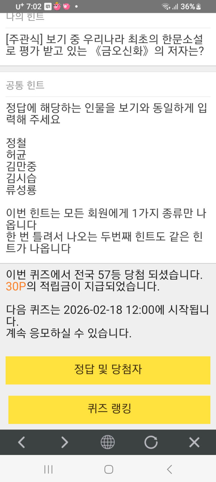 퀴즈 30원 받았어요 감사합니다 행복한 하루 되세요