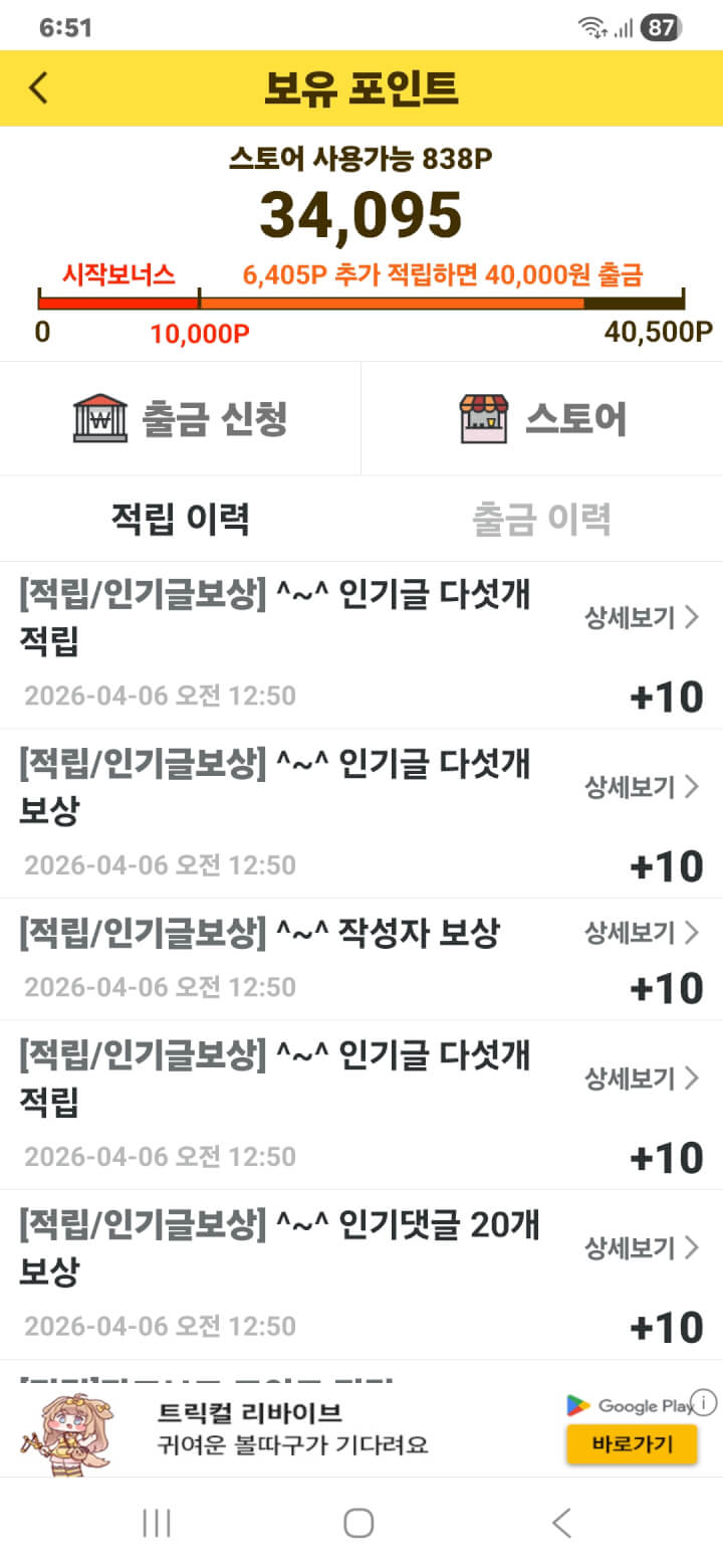인기글 다섯개 보상 완료를 하였습니다. 항상 꾹 감사드립니다.