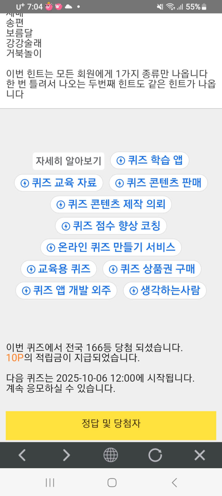 퀴즈 오타처서 다시 쓰는 바람에 10원 받았어요 감사합니다 행복한 일 가득 하시고 좋은일만 있으시길 바래요