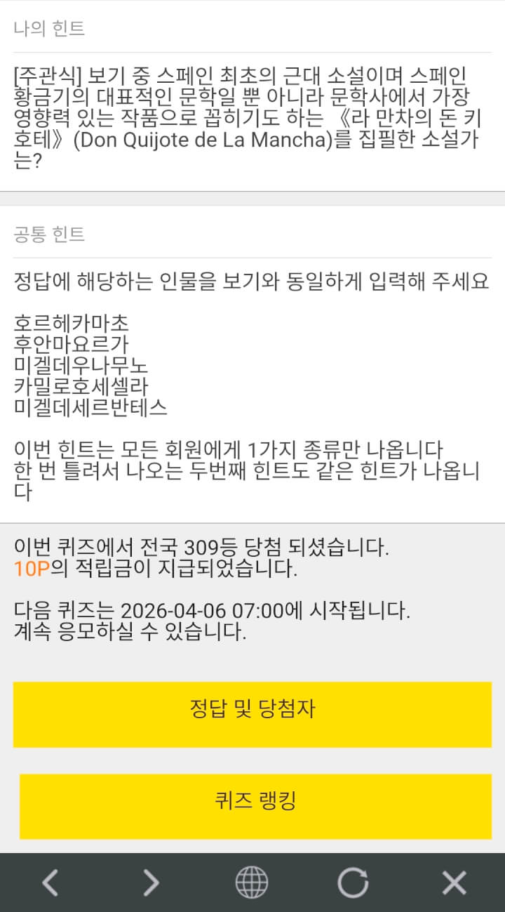 10시퀴즈 10원 받았습니다