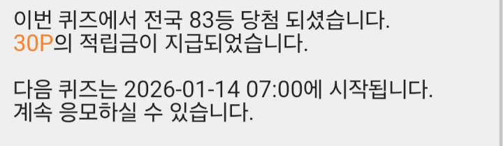 10시 퀴즈에서 30p 받았습니다 😊 댓글로 함께해 주셔서 감사합니다 ❤️🩷🧡🍀