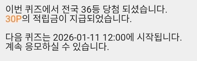 아침 7시퀴즈 30원 기분좋게 받았어요 댓글 감사드립니다