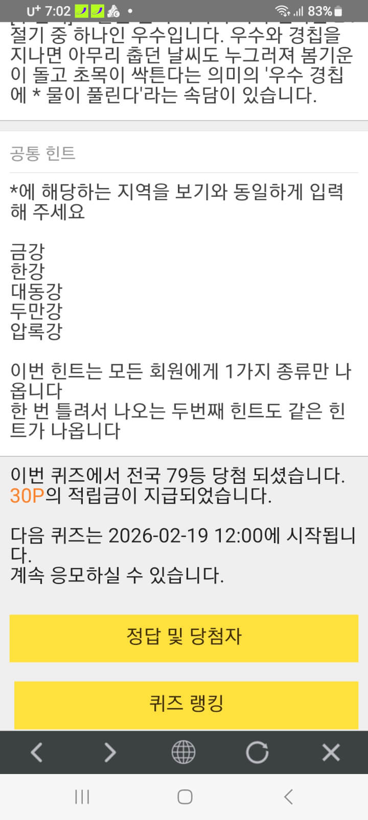 퀴즈 30원 받았어요 감사합니다 활기찬 아침 되세요