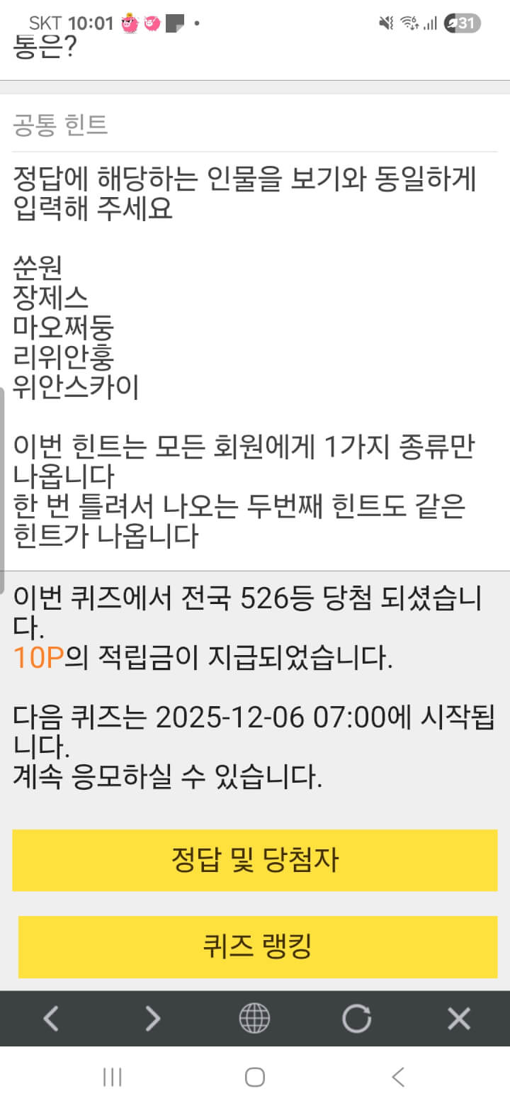퀴즈와 숫자놀이 올립니다 푸시님들 행복한 불금 되세요