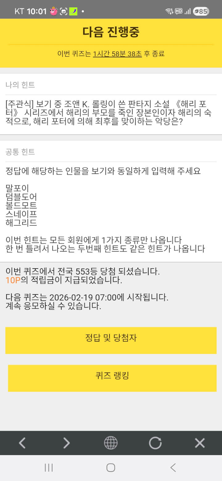 퀴즈 10원 받았어요
