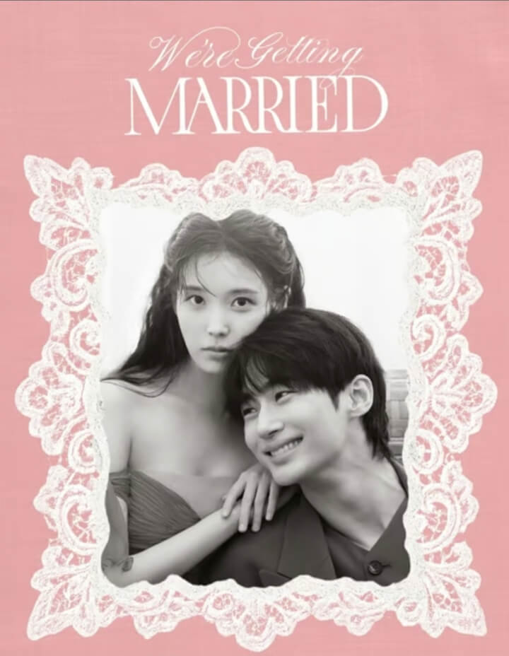 청첩장으로 꾸며진 사진에는 드레스를 입은 아이유, 수트를 입은 변우석의 모습이 담겼다.