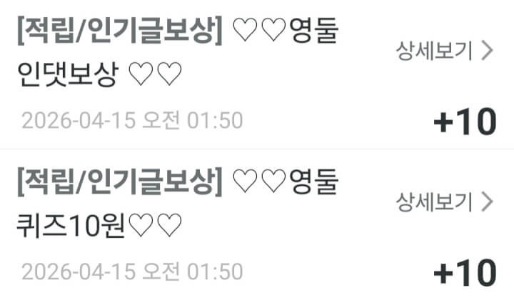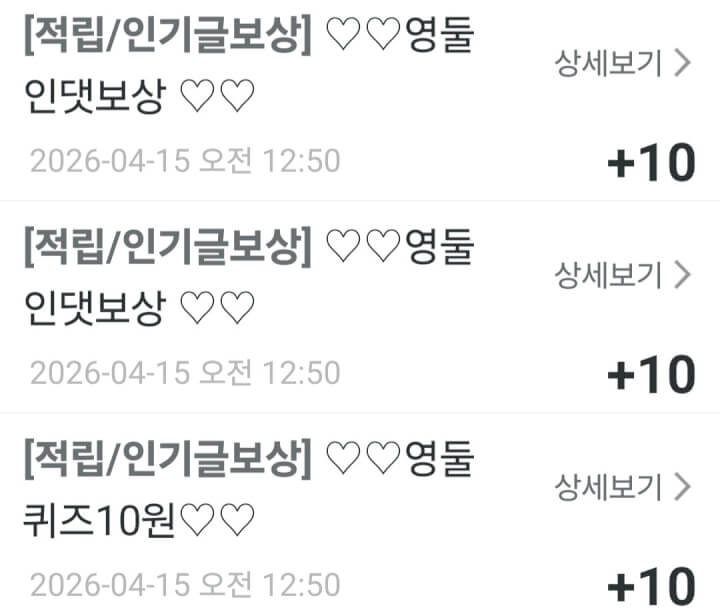 어제받은 인기글보상 5개 담아 오늘글 마무리합니다 ☘️☘️