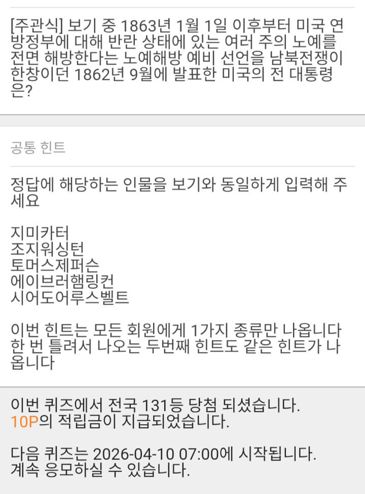 - 10시퀴즈