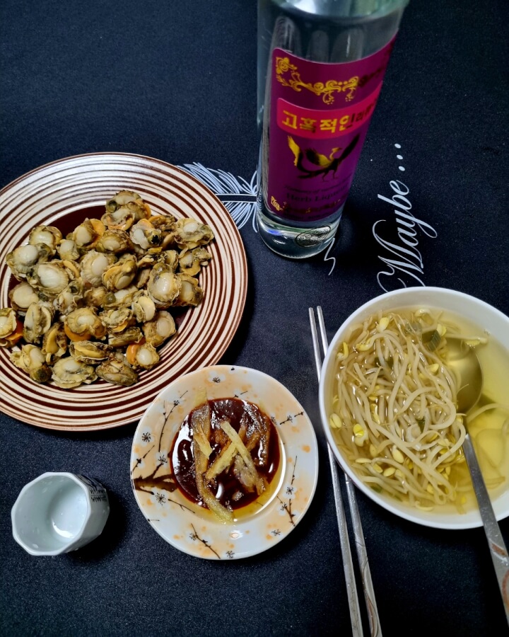 오늘은 가리비랑 간단히ᆢ한달전 선물받은 술이랑 먹으려 햇는데ᆢ 지금보니 😱40도네요;;;; 맛만 살짝 보는걸루~~~~~😋