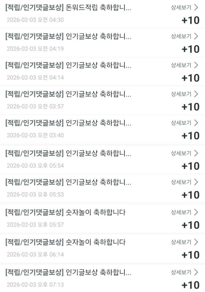 2월 3일 인댓보상 20개 완료 했습니다 댓글 찾아주셔서 감사합니다