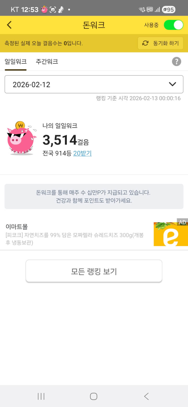 돈워크 적립 받았어요