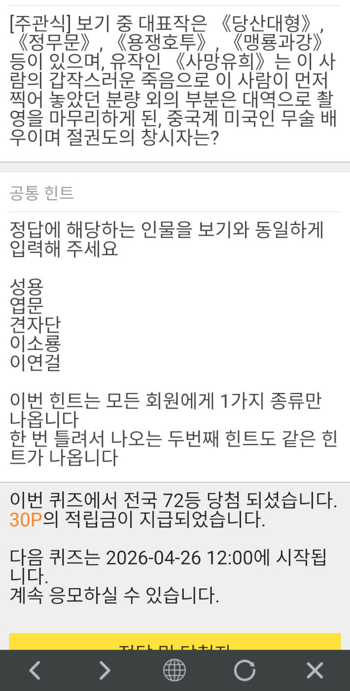 7시 퀴즈30점 받았어요. 12시 퀴즈 화이팅 하세요 ~~