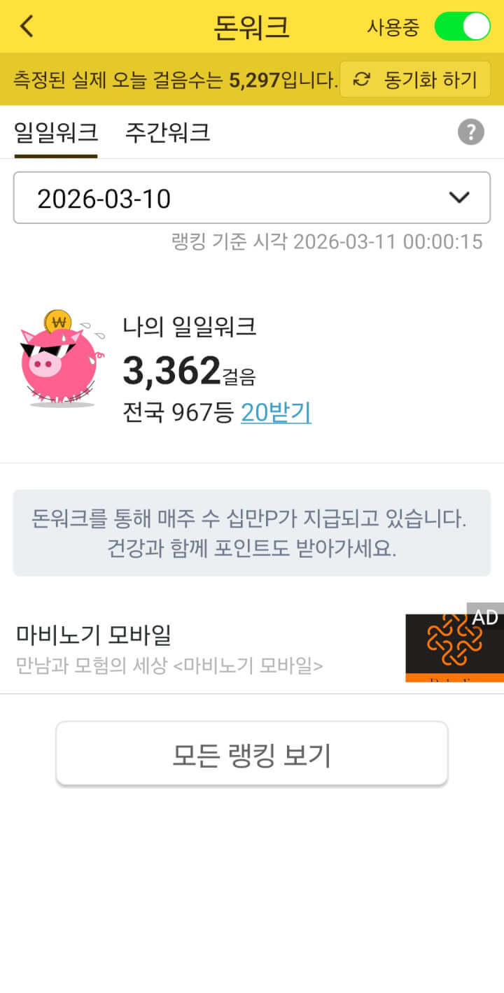돈워크 적립 20점 받았어요 ~~